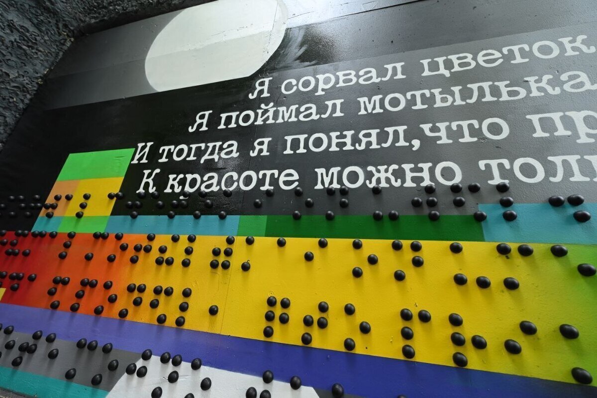 – Да, эта экскурсия действительно очень популярна среди горожан. Мы показываем коррекционную школу №127 для детей с нарушением зрения, специализированный детский сад, нашу библиотеку, Дом культуры Всероссийского общества слепых и предприятие «Поликом», где работают незрячие люди, производящие щеточные изделия. Особое внимание уделяем граффити по Брайлю на стене ДК слепых, где проводим различные активности.