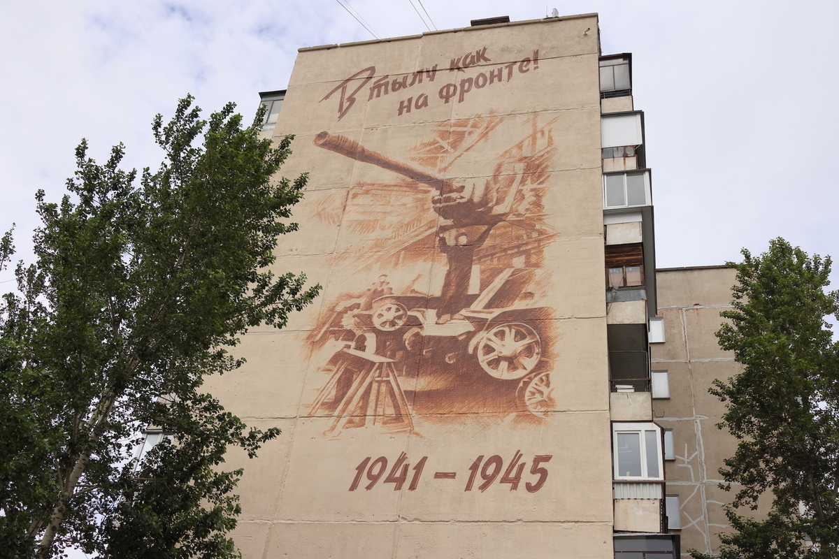 Челябинские художники участвуют не только в конкурсах, но и украшают образами Великой Победы города. Фото Дмитрия Куткина ("Вечерний Челябинск")