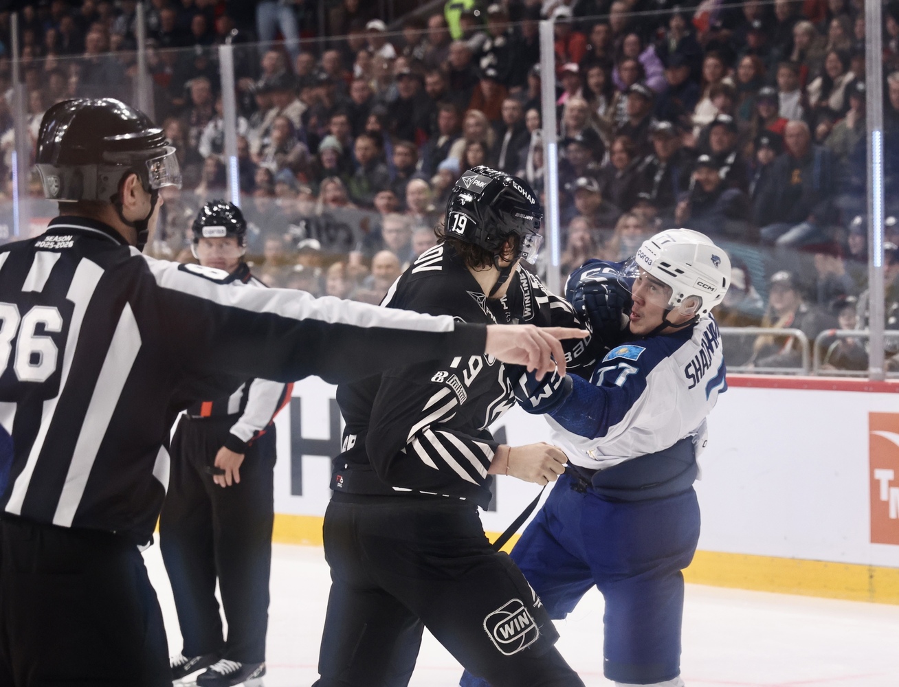 В Челябинске хоккейный матч между "Трактором" и астанинским "Барысом" отметился не только голевыми моментами (итоговый счет в матче 3:2 в пользу челябинцев), но и стычками да драками на льду между игроками команд. Как шли в ход кулаки, в своем фоторепортаже представляет Юлия Боровикова.