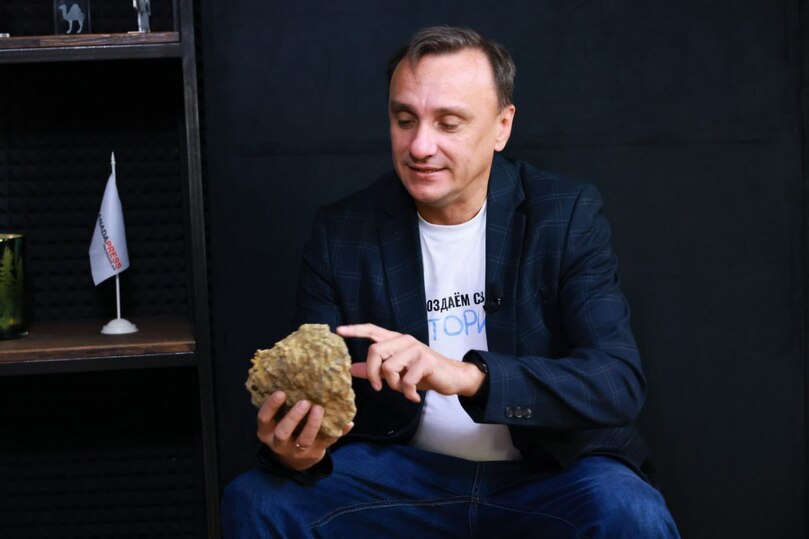 Андрей Трушников: Это исторический, можно сказать, камень. Это песнь вечности. Мы привезли его из нашей последней экспедиции в Серпиевку, где снимали документальный фильм. История этого камня прямо восхитительна. Смотрите — это же кораллы. Местные жители называют их водорослями. Этой находке примерно от 500 до 150 миллионов лет. Именно в тот период на территории Урала плескалось море, и вот такие организмы здесь обитали. Благодаря таким находкам мы вместе со съемочной группой пытаемся прикоснуться к вечности.